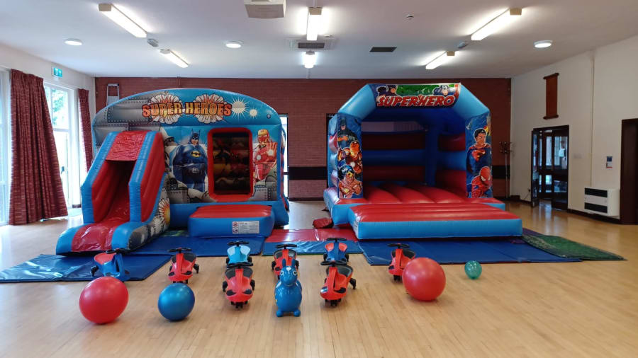 Ideal for those larger parties, this is an impressive package suitable for ages 0 - 11 years as theres its t keep them entertained. The ultimate super hero theme party package for as it includes 2 hero bouncy castles and plenty of ride ons. Very popular birthday party hire package as it gives a great variety of fun with bouncing, hoppers, slide and didi cars.