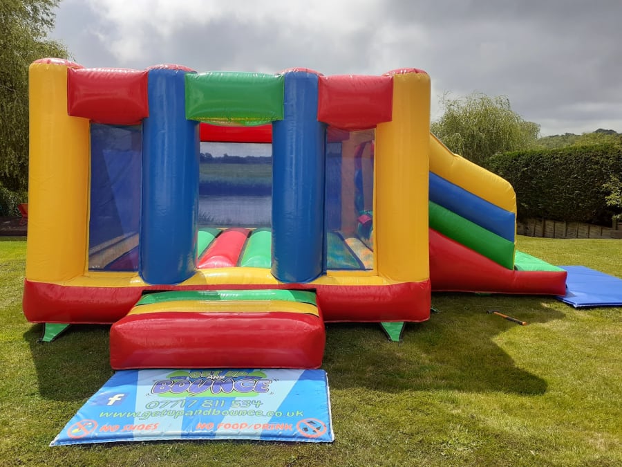 Our Brand New Multi Colour Slide Bouncy Castle is suitable for toddlers and children aged up to 11 years. A great uni-sex option for Boys and Girls due to its vibrant colours that appeal to all kids. Nice big bounce area with great slippy slide to match, it will brighten up any party room or venue to create a lovely party centre pice for the room. Low height castle but high walls so the kids cannot climb over the top of them. Very open with clear mesh walls so very easy to see the children bouncing inside. But perfect for toddlers and babies as well as they cannot fall off onto the step.