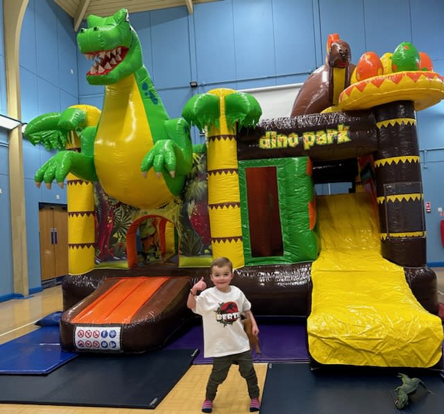 Dare you go past the Dinosaur to enter the mouth into the large activity play area inside. With biff bash, a large tunnel, boxing bags and a large extremely slippy slide. The bright and colourful design really stands out and looks great. This is sure to be the most popular hire item for any party in Poole, Bournemouth, Dorset and Hampshire.
