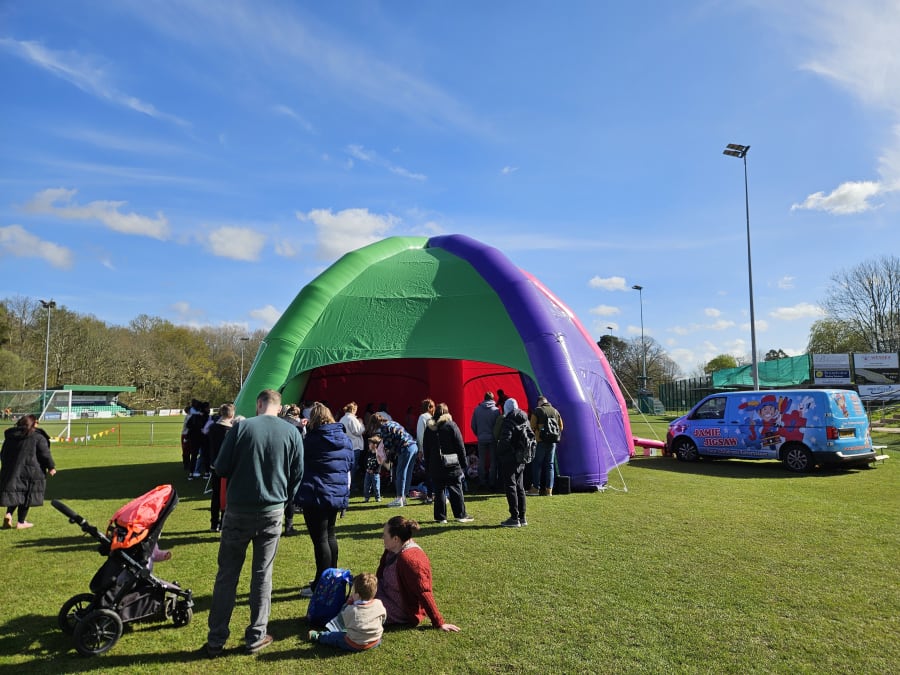 Create your own Event or Party Venue in a field, or add that WOW Centrepiece with our Huge 12m Diameter Inflatable Festival Event Dome Hire. This is a unique and different option compared to a boring white marquee, stretch tent or gazebo hire. Perfect for school events, festivals, fun days, big parties and more. Covering Dorset and Hampshire, or further afield if required. Are you holding a circus or festival theme event? Do you need an entertainment focus point? We can even add a stage, sound system, microphones, entertainment including Magicians, DJ, Disco, Dancing, Bubble Shows and more.