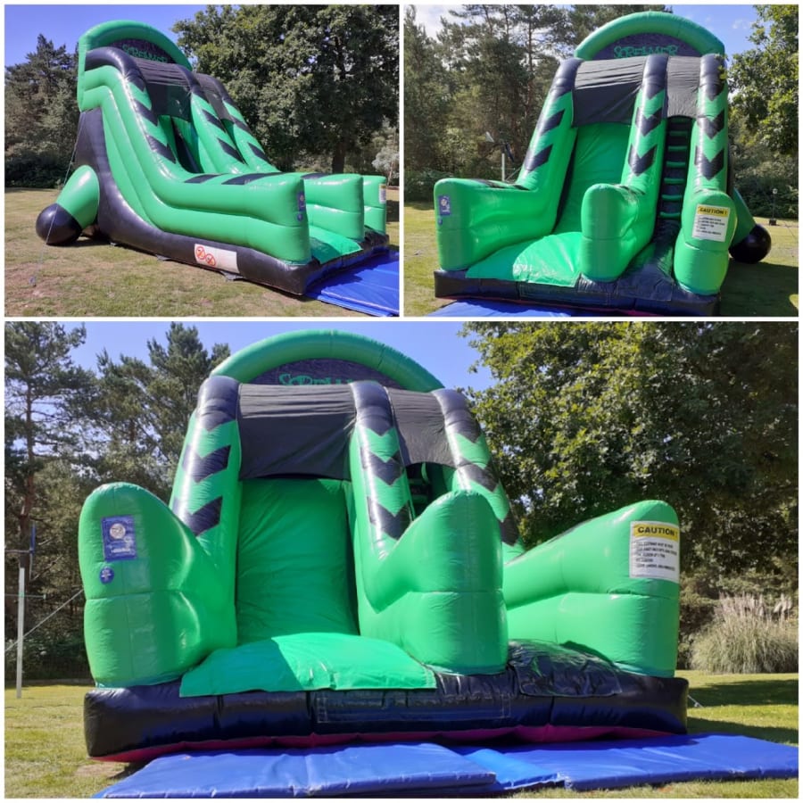 A large Vertical Rush Event Slide suitable for children, teens and adults to use. Perfect to add something cool, different and impressive at large events or parties. The design makes it similar to the Mega Drop slides you find in large play centres, giving you a very fast rush experience.