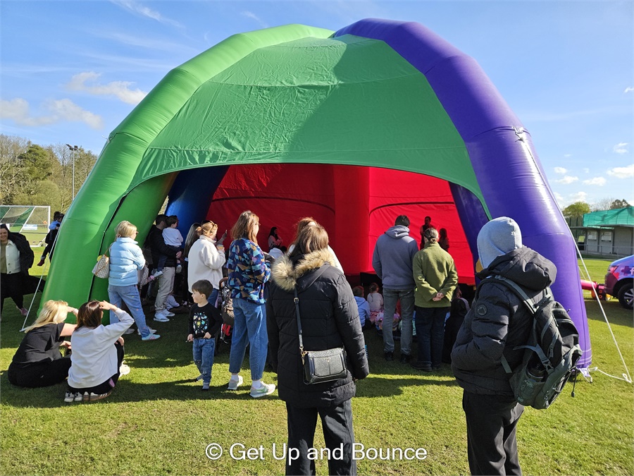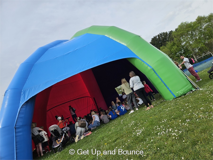 Create your own Event or Party Venue in a field, or add that WOW Centrepiece with our Huge 12m Diameter Inflatable Festival Event Dome Hire. This is a unique and different option compared to a boring white marquee, stretch tent or gazebo hire. Perfect for school events, festivals, fun days, big parties and more. Covering Dorset and Hampshire, or further afield if required. Are you holding a circus or festival theme event? Do you need an entertainment focus point? We can even add a stage, sound system, microphones, entertainment including Magicians, DJ, Disco, Dancing, Bubble Shows and more.