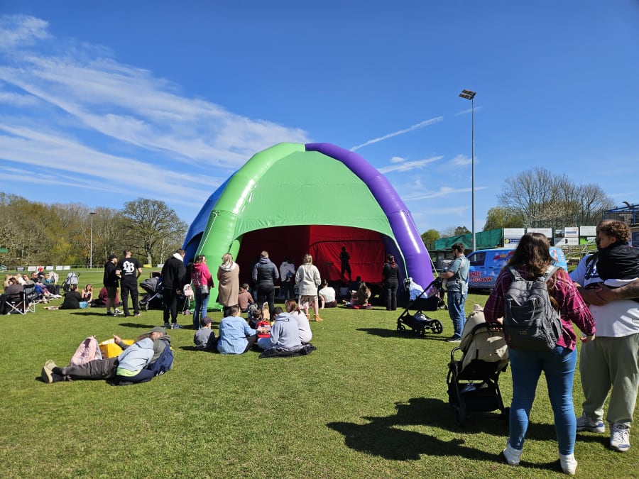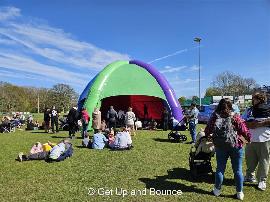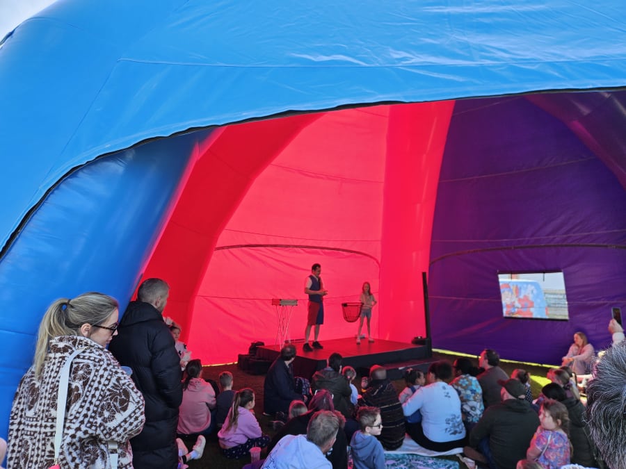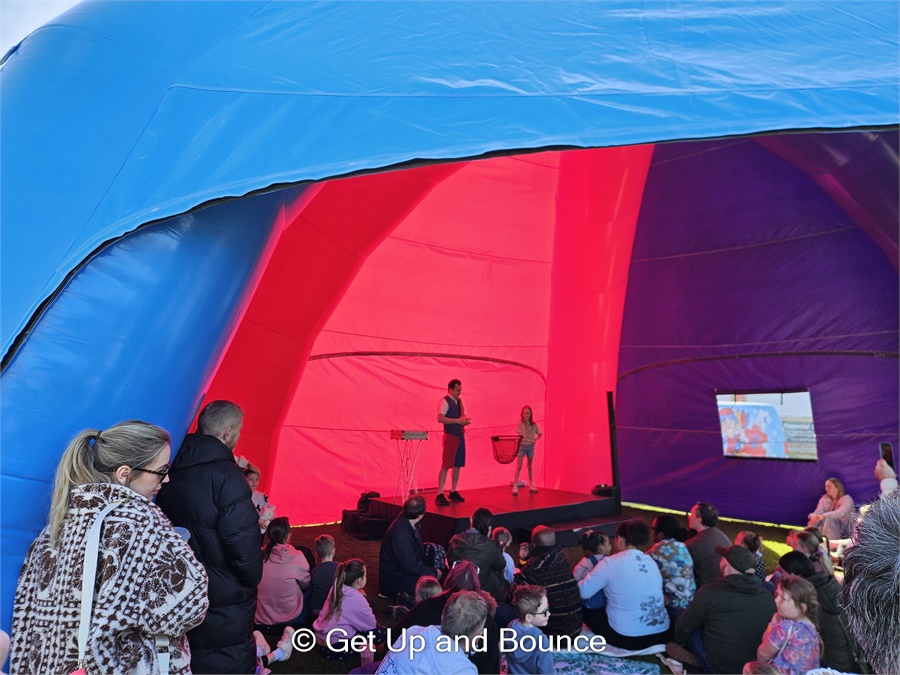 More about the Star Tent - Create your own Event or Party Venue in a field, or add that WOW Centrepiece with our Huge 12m Diameter Inflatable Festival Event Dome Hire. This is a unique and different option compared to a boring white marquee, stretch tent or gazebo hire. Perfect for school events, festivals, fun days, big parties and more. Covering Dorset and Hampshire, or further afield if required. Are you holding a circus or festival theme event? Do you need an entertainment focus point? We can even add a stage, sound system, microphones, entertainment including Magicians, DJ, Disco, Dancing, Bubble Shows and more.
