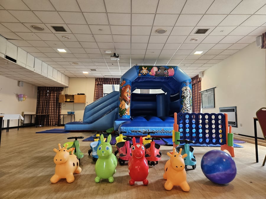 Operational area required at least 1.2m around every side of the inflatable. So approx. 20ft (6.0m) (length)/ 26.5ft (8.0m) (width)/ 9.5ft (height)