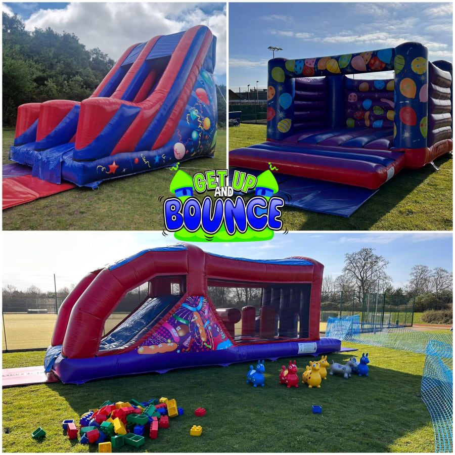 Great option to choose as it provides a nice range of inflatables. Bounce on the castle, go down the fast drop slide, and climb through the fun run to a nice zippy slide.