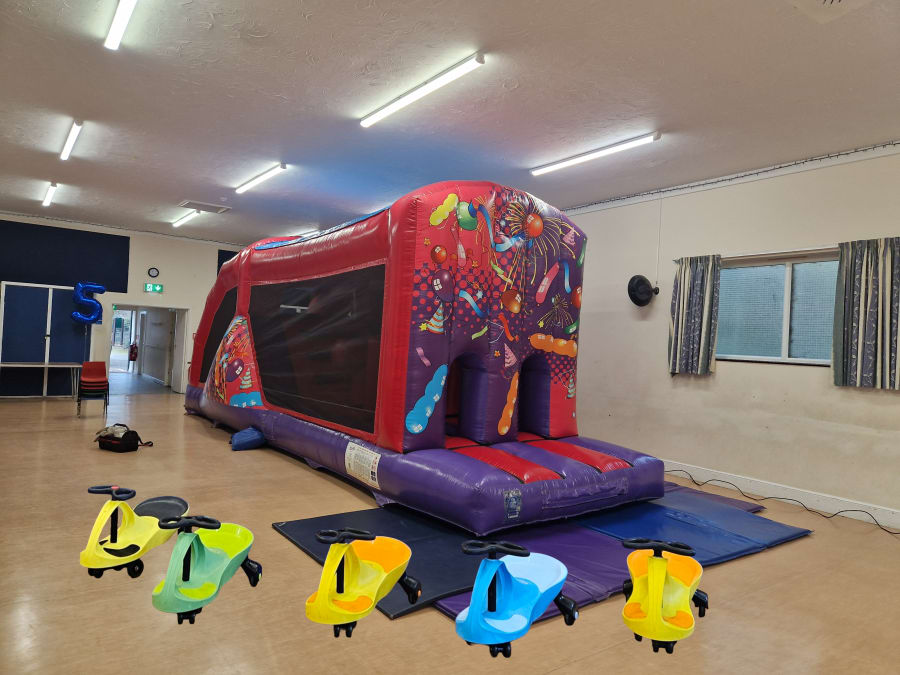 Hire this great Indoor Party Package which is perfect for large numbers and those looking for a more impressive and involved bouncy castle with a big slide. Plus our very popular didi cars, and hoppers that even the adults want to play with. Suitable for some halls with low height ceilings as the fun runs are 10.5 feet in height (3.35m). Package aimed at keeping 20 children bouncing and having fun for hours. Hire price includes set up ready for the kids to play, and collection.