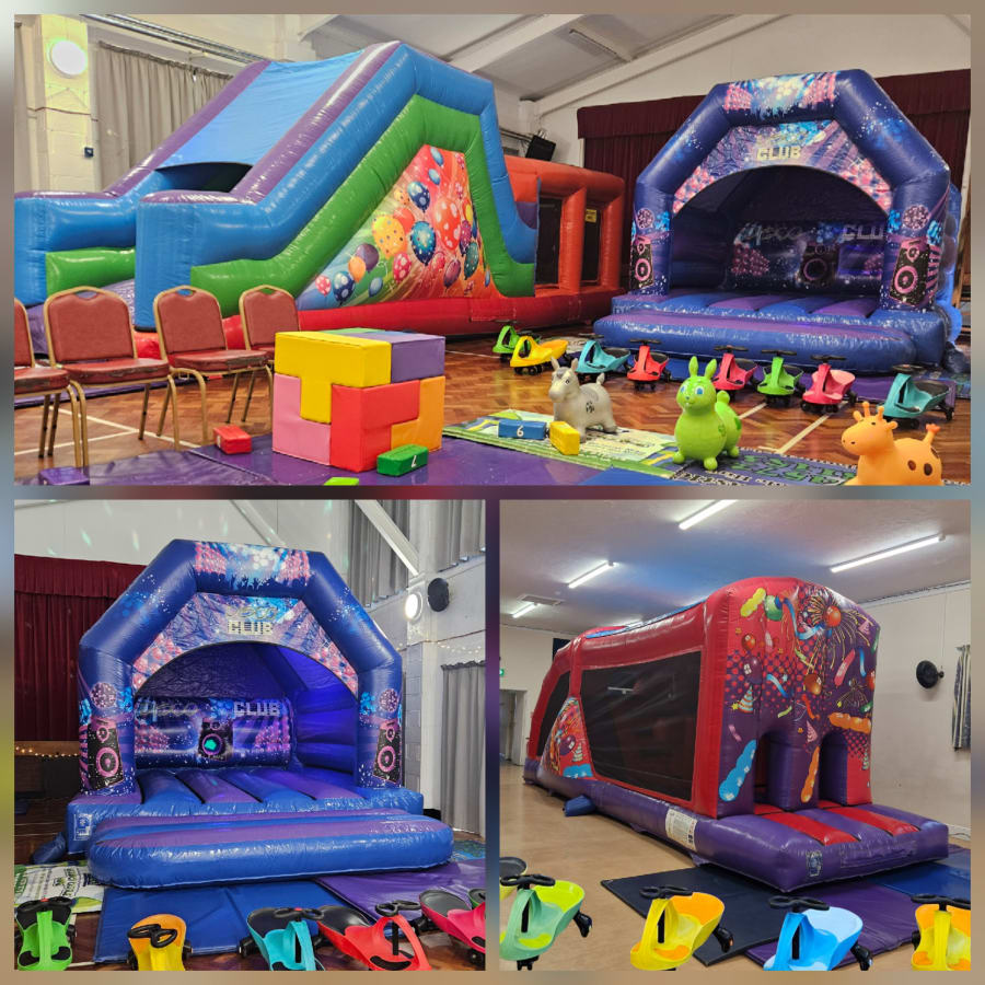 If you have hired a large hall space and have lots of kids coming to the party? Then this could be the ultimate inflatable hire package you need. Offering a great variety of fun and variety for the kids to play on. Music and disco lights within a great Bouncy Castle Disco inflatable. Plus one of our ever popular Fun Run assault courses, that have a big slippy slide at the end. Plus ride ons for all to use including didi cars and hoppers. Turn your hire venue into a Bouncy Castle Play Centre with this Package. Perfect for birthday parties, events and celebrations as it offers all round entertainment.