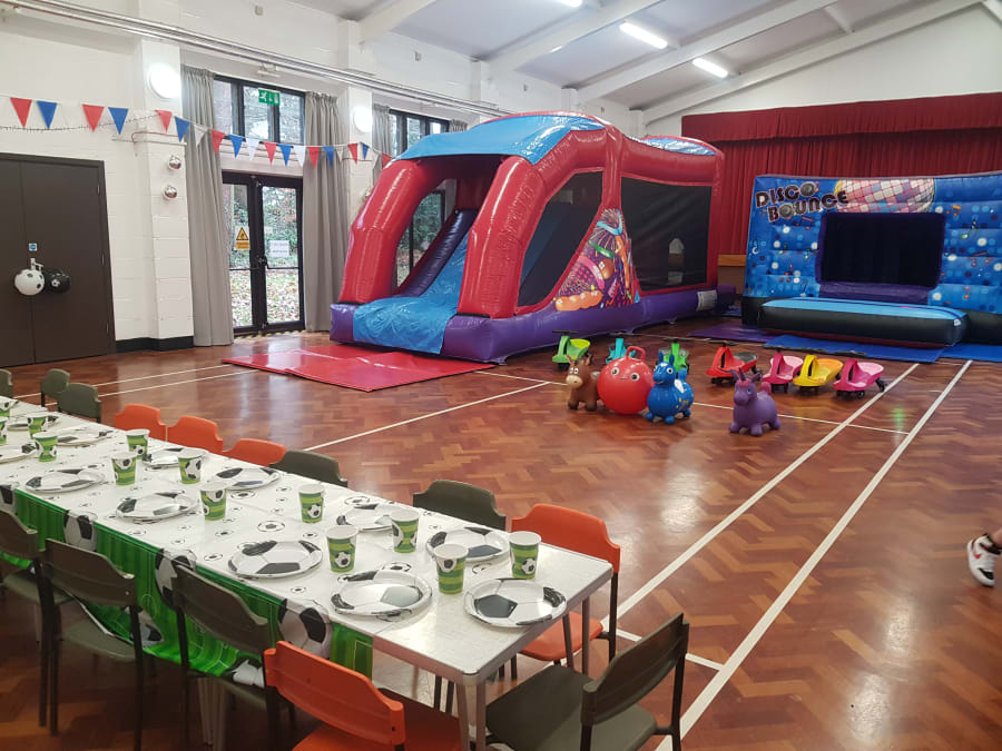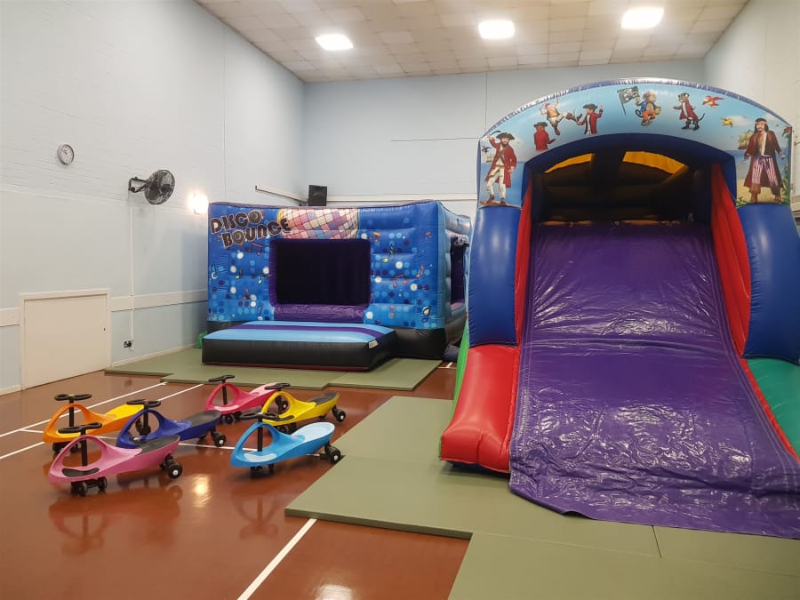 If you have a large hall space you need filling this may be the ultimate inflatable hire package you need. Offering a great variety of fun and exciting things for the kids to play on. Music and disco lights within a great Bouncy Castle Disco Cube inflatable. Plus one of our ever popular Fun Run assault courses, that have a big slippy slide at the end. Plus ride ons for all to use including didi cars and hoppers. Turn your hire venue into a Bouncy Castle Play Centre. Perfect for birthday parties, events and celebrations as it offers all round entertainment.